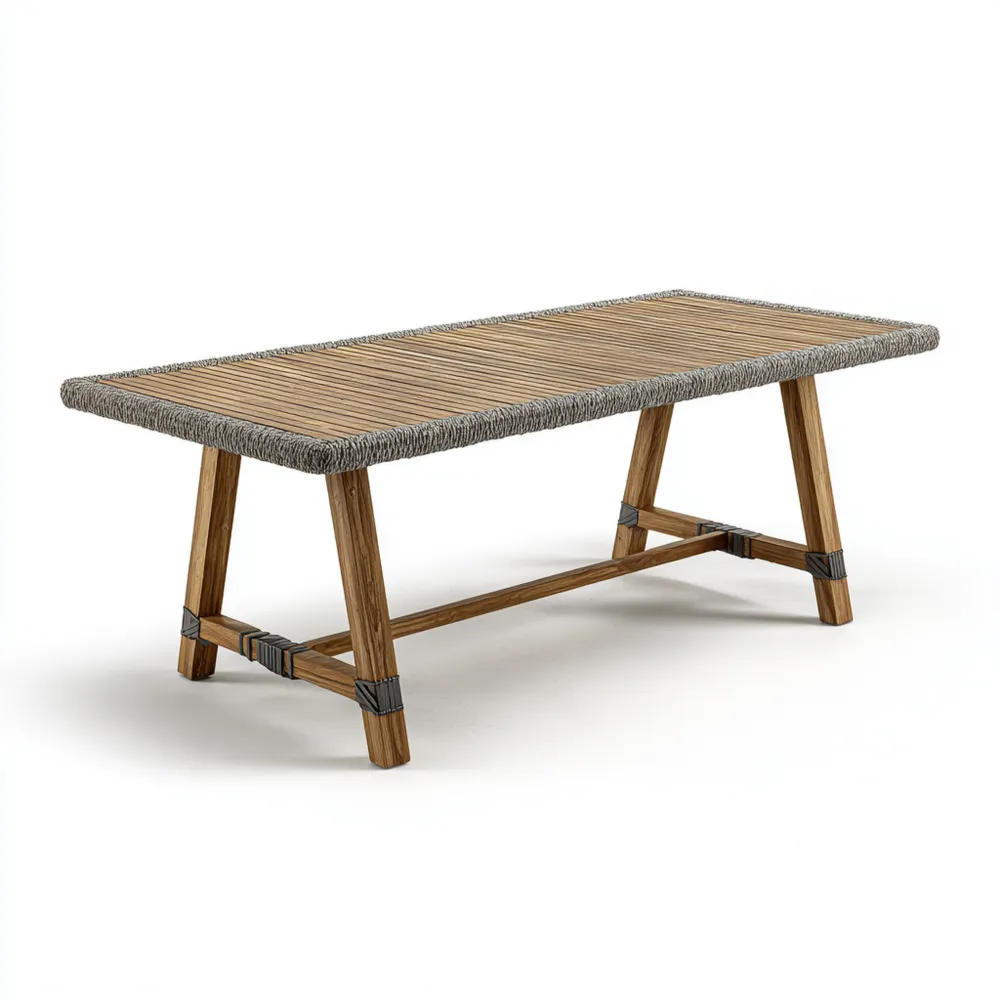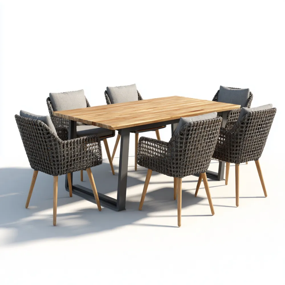Set tavolo e sedie da giardino in legno e rattan 150x90x75 cm – Grigio Scuro