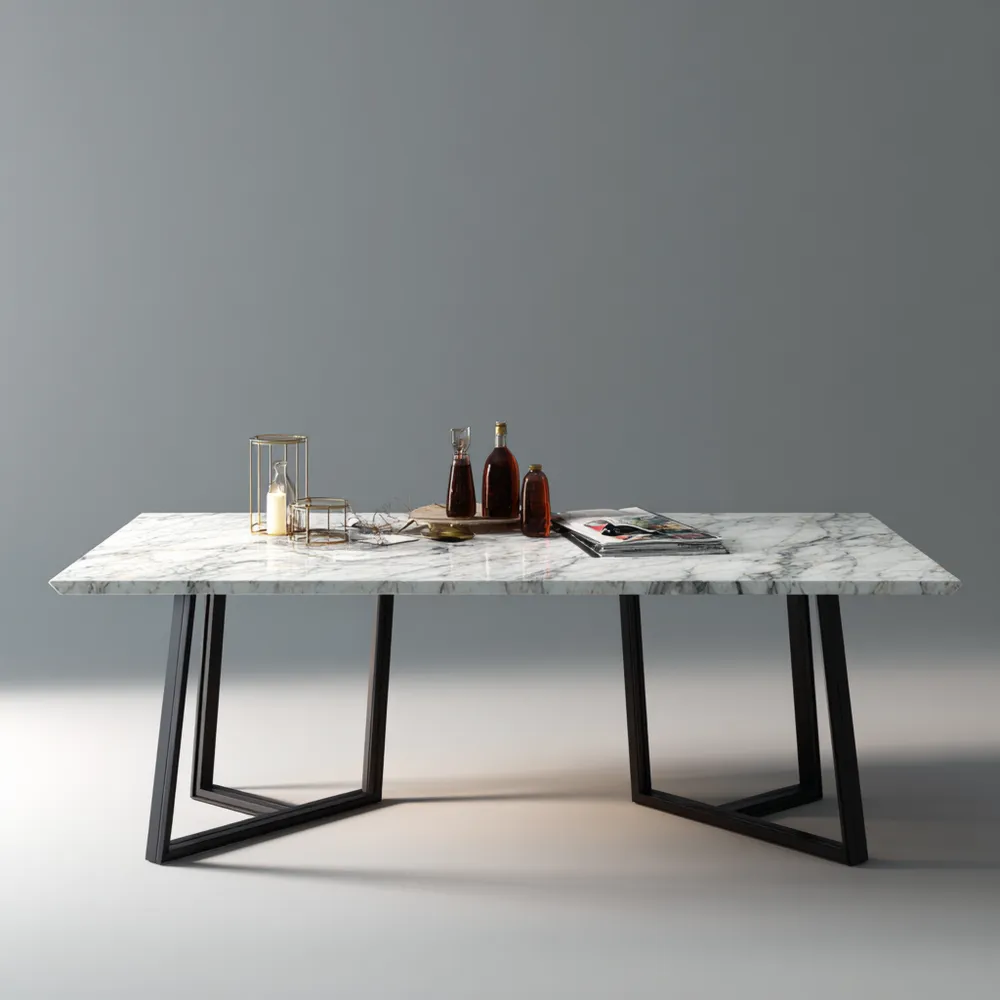 Tavolo da pranzo Rettangolare in Marmo 180x90x75 cm - Bianco - Design Moderno
