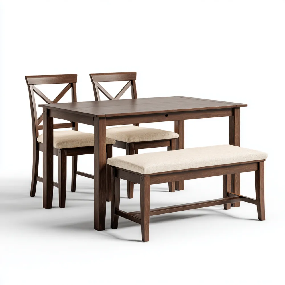 Set tavolo e sedie da pranzo - Legno massello 120x80x75 cm - Marrone/Beige - Classico