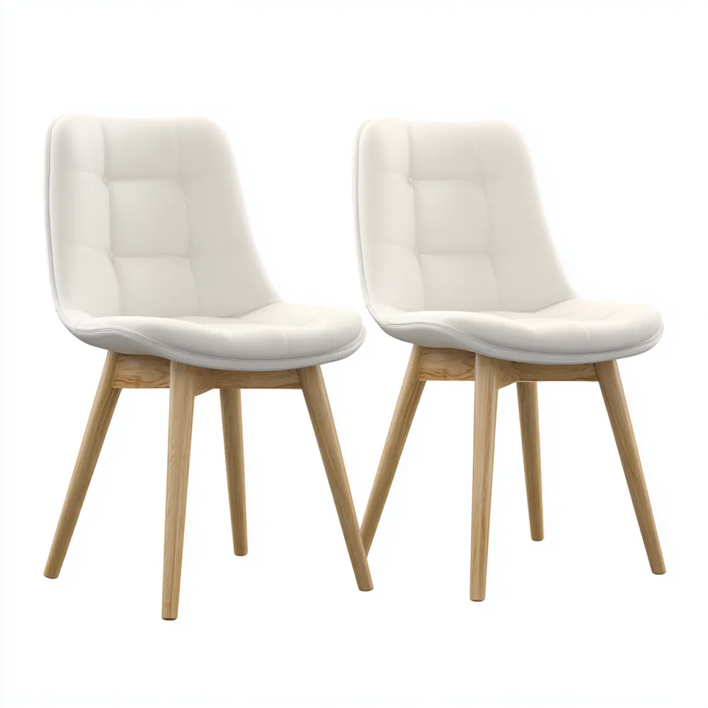 Set di 2 Sedie da Pranzo 48x55x82 cm - Rivestimento in Pelle Sintetica Bianco - Gambe in Legno Naturale - Design Moderno