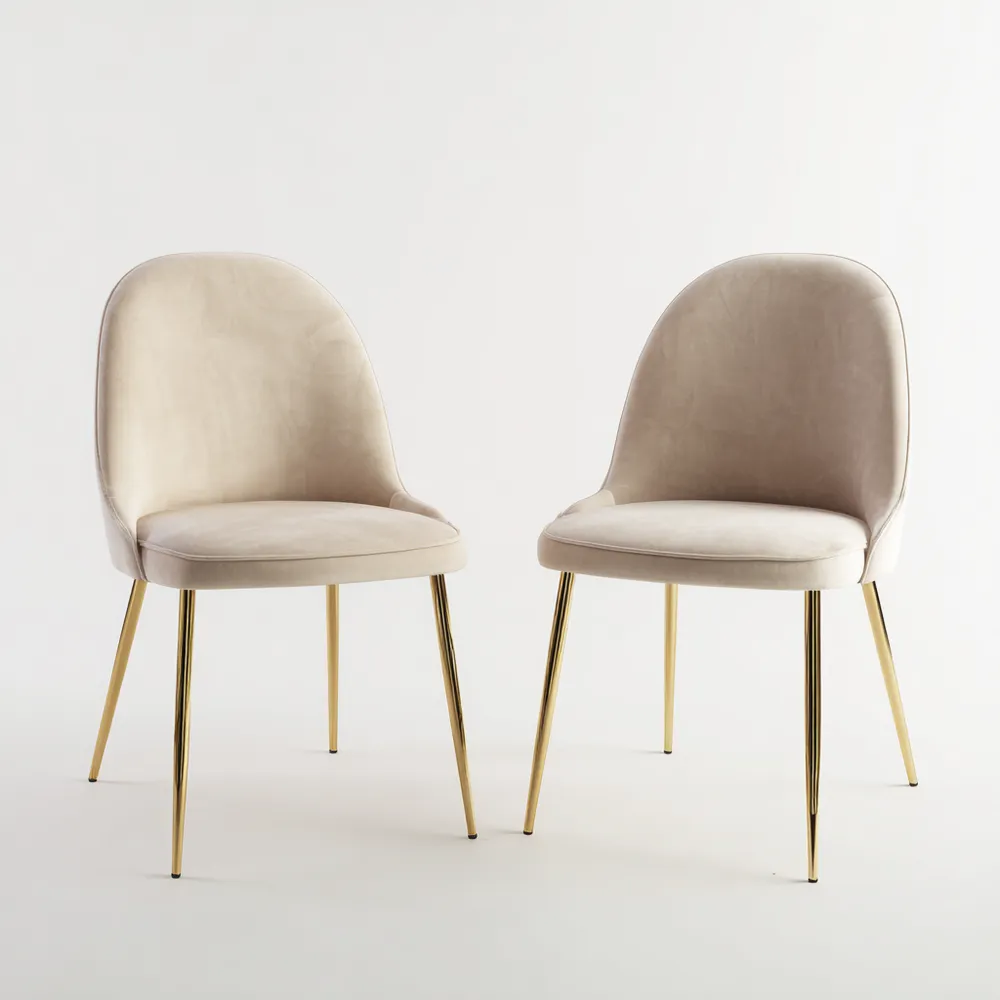 Sedie da pranzo imbottite 48x58x85 cm in velluto Beige con gambe in metallo dorato - design moderno