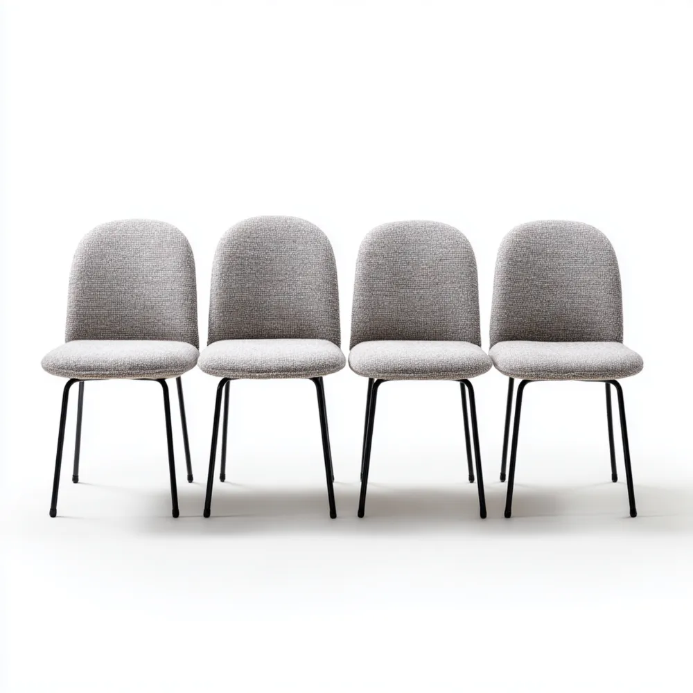 Materiali e LavorazioneLe sedie sono rivestite in tessuto Grigio Chiaro di alta qualità, comodo e facilmente abbinabile. Le gambe sono realizzate in metallo Nero, offrendo stabilità e durata.