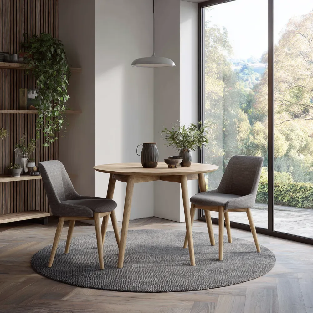 Materiale e ArtigianatoIl tavolo è realizzato in legno di rovere di alta qualità, mentre le sedie sono rivestite in tessuto Grigio resistente e confortevole. Le gambe in legno offrono stabilità e durata nel tempo.